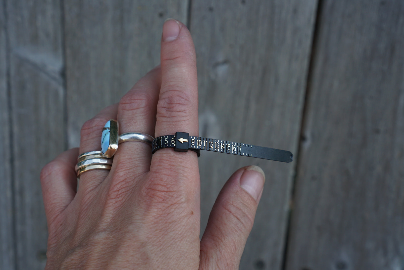 Are you always wondering what your ring size is but never know how to find out? This ring sizer is the perfect addition to your jewelry box. This is a reusable item and can be used to find the ring size of all your fingers. It measures from a size 1 up to 17. Simply slip the sizer on your finger and cinch down until you have a comfortable fit. The arrow will point to your true size.