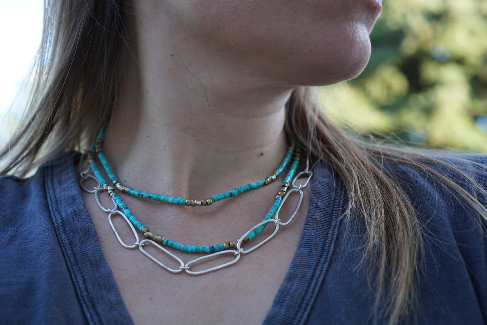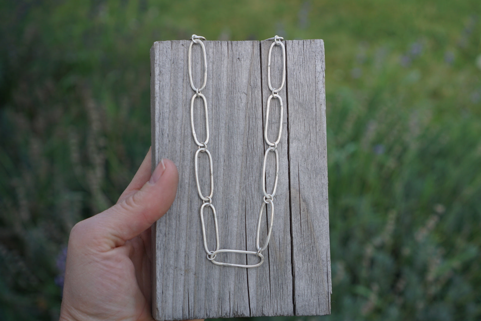 Pre Sale option. Please allow 2-3 weeks for construction and delivery. A beautiful necklace made of completely handcrafted sterling silver links and jump rings, all soldered shut for quality. This necklace is finished with a handmade hook clasp and can be hooked to any link of the necklace to adjust it's length. An amazing staple piece. The necklace measures 18.25 inches and is fully adjustable.