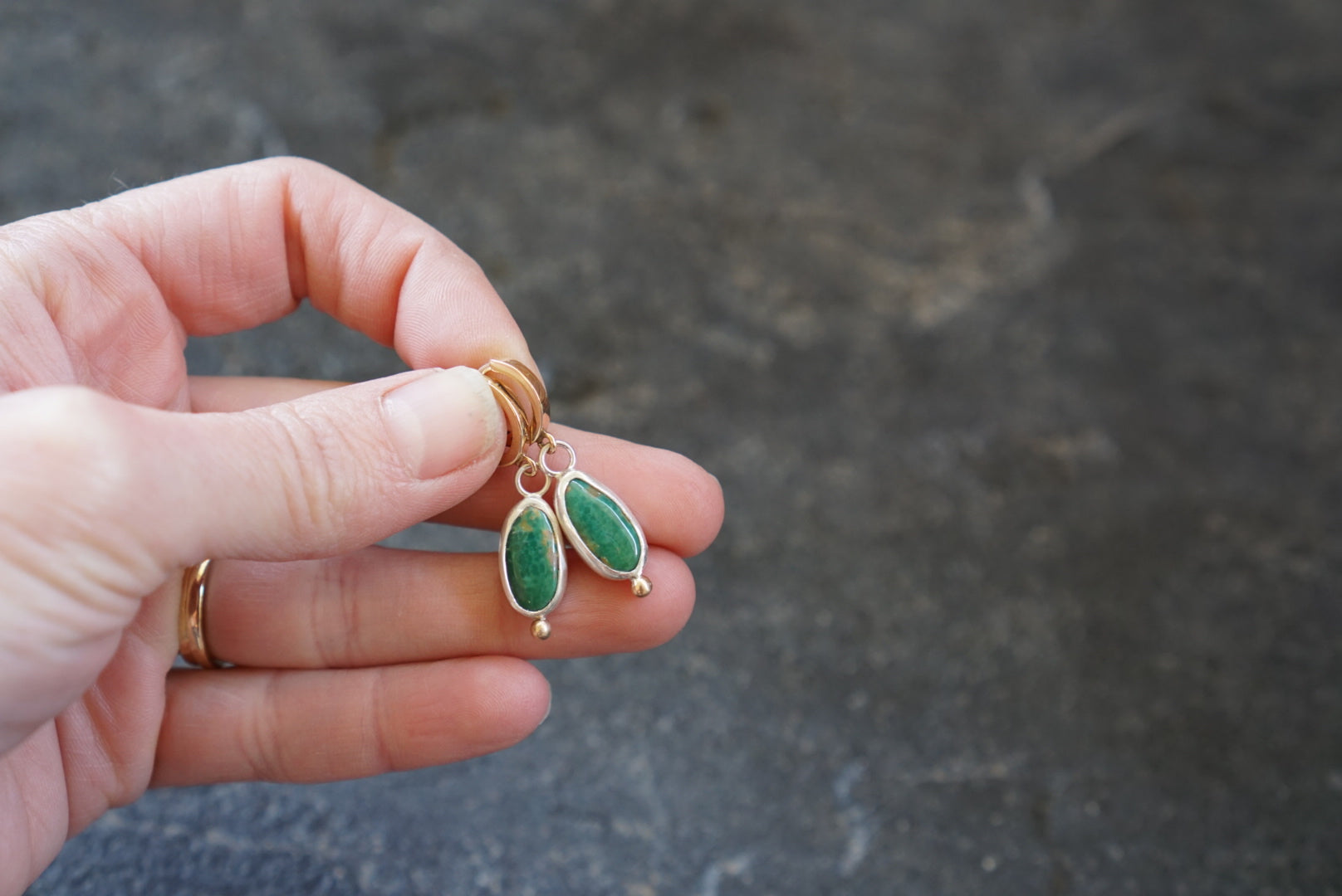 Little Minis Huggie Hoops- Green Turquoise