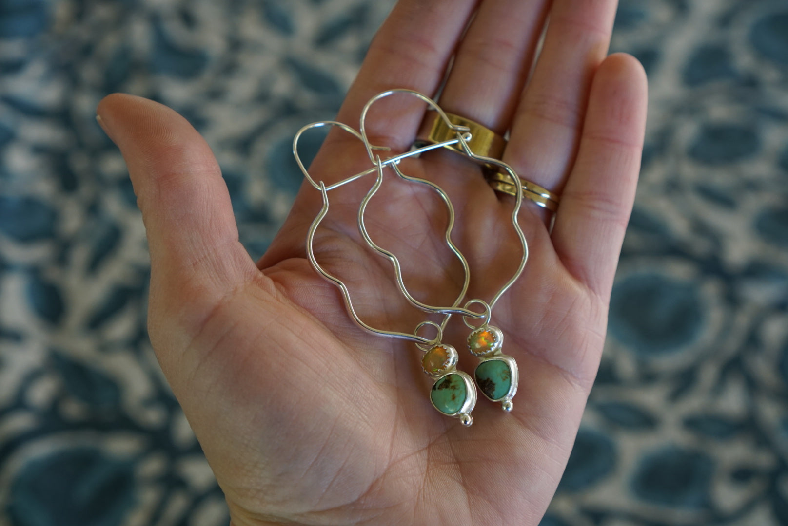 Rhode Hook Hoops- Turquoise & Ethiopian Opal + Silver