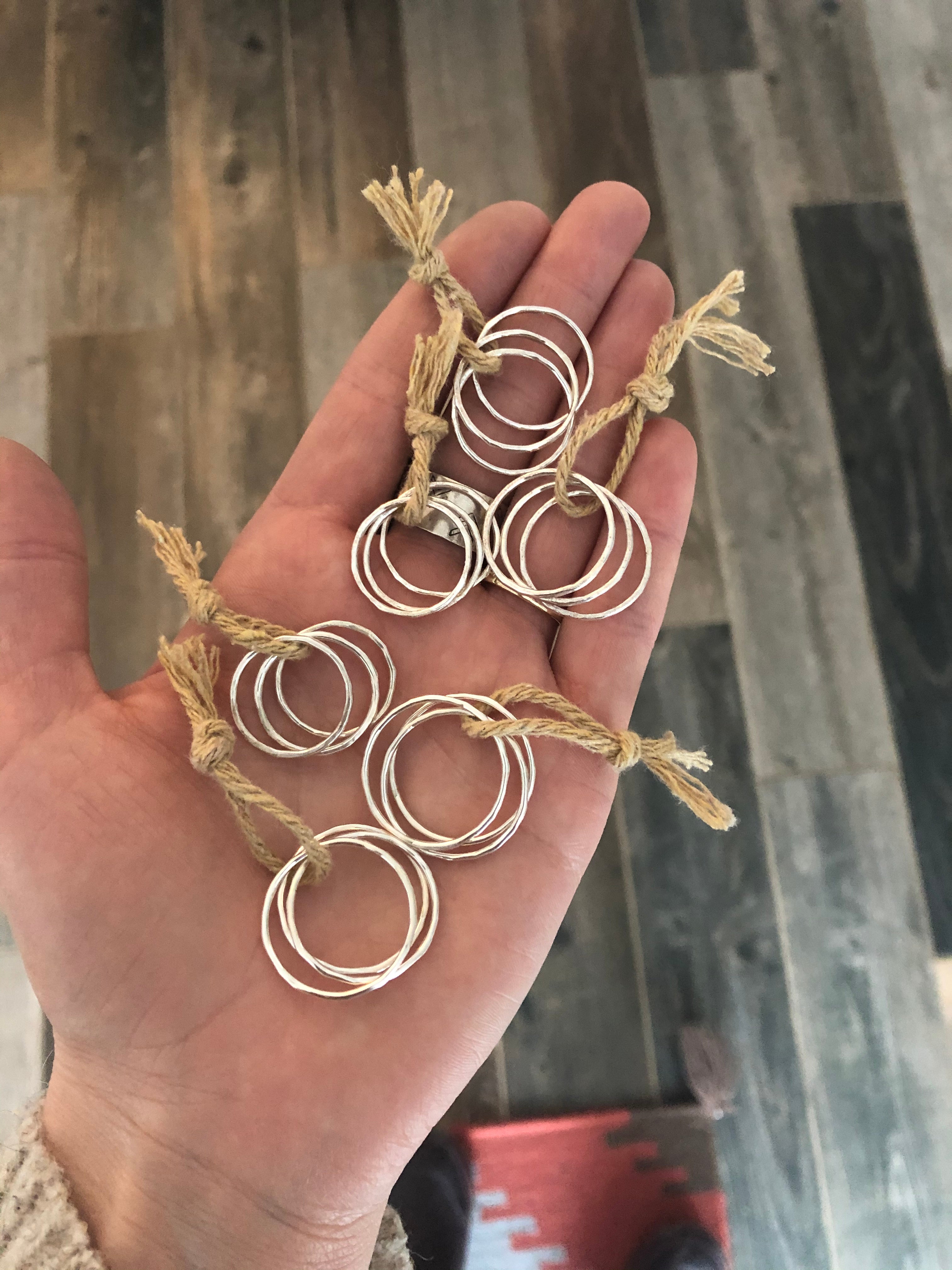 Set of three thin simple hammered Sterling Silver stacking rings. Stack them together or wear them individually.
